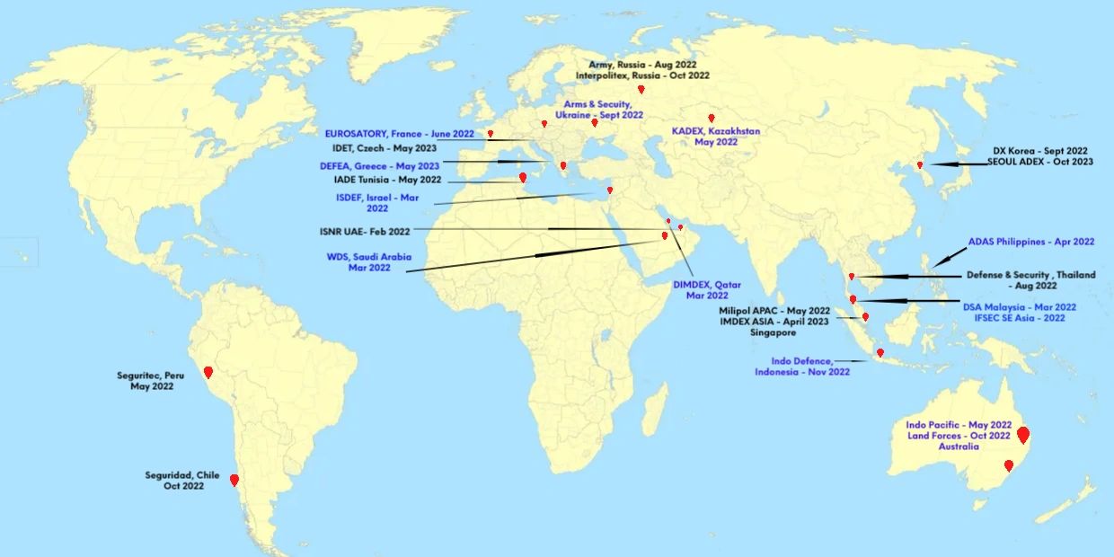 International Aerospace, Defence and Security, Naval & Homeland Security exhibitions for the year 2022-2023.
